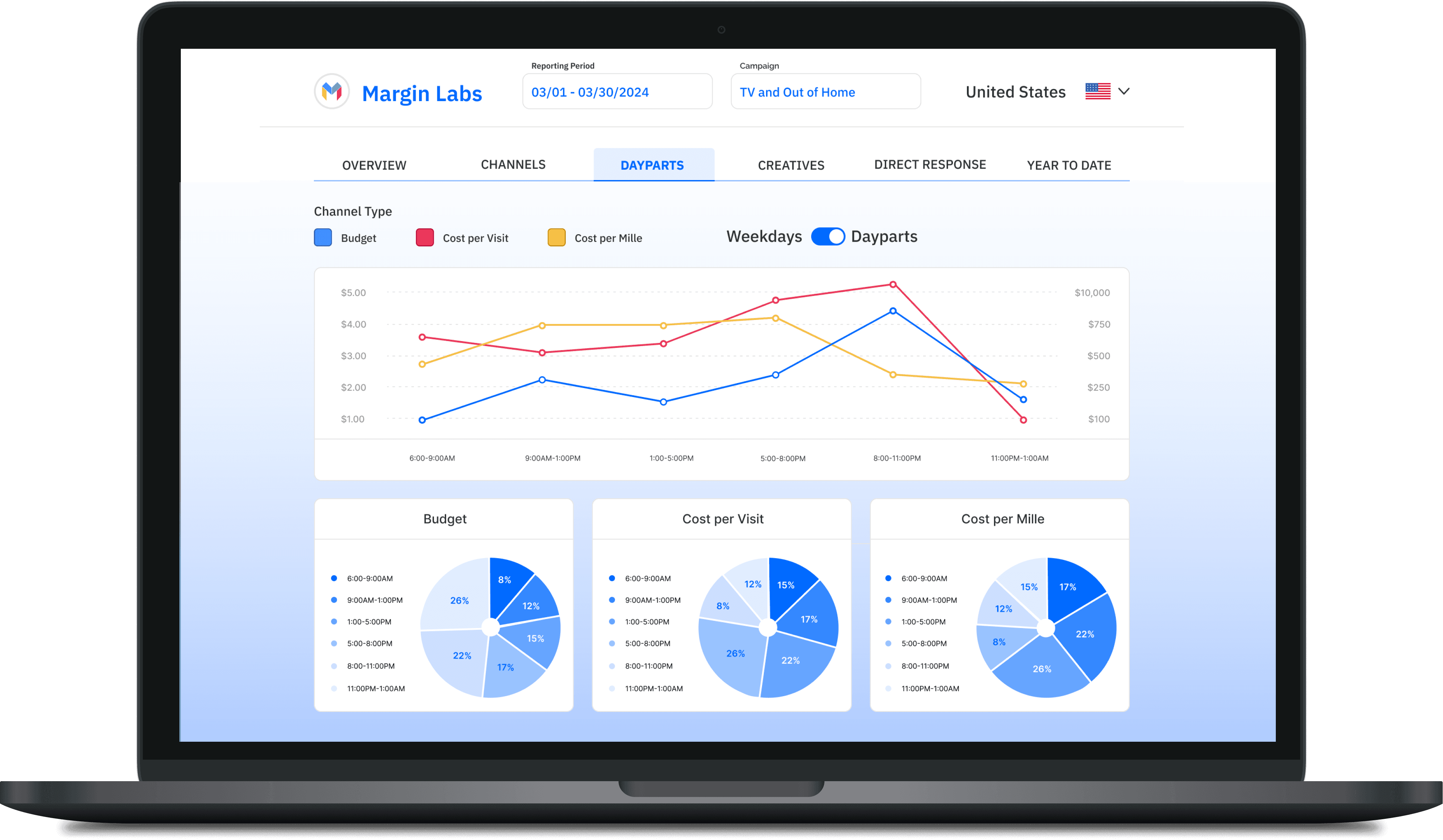 Toggle between dayparts and weekdays.