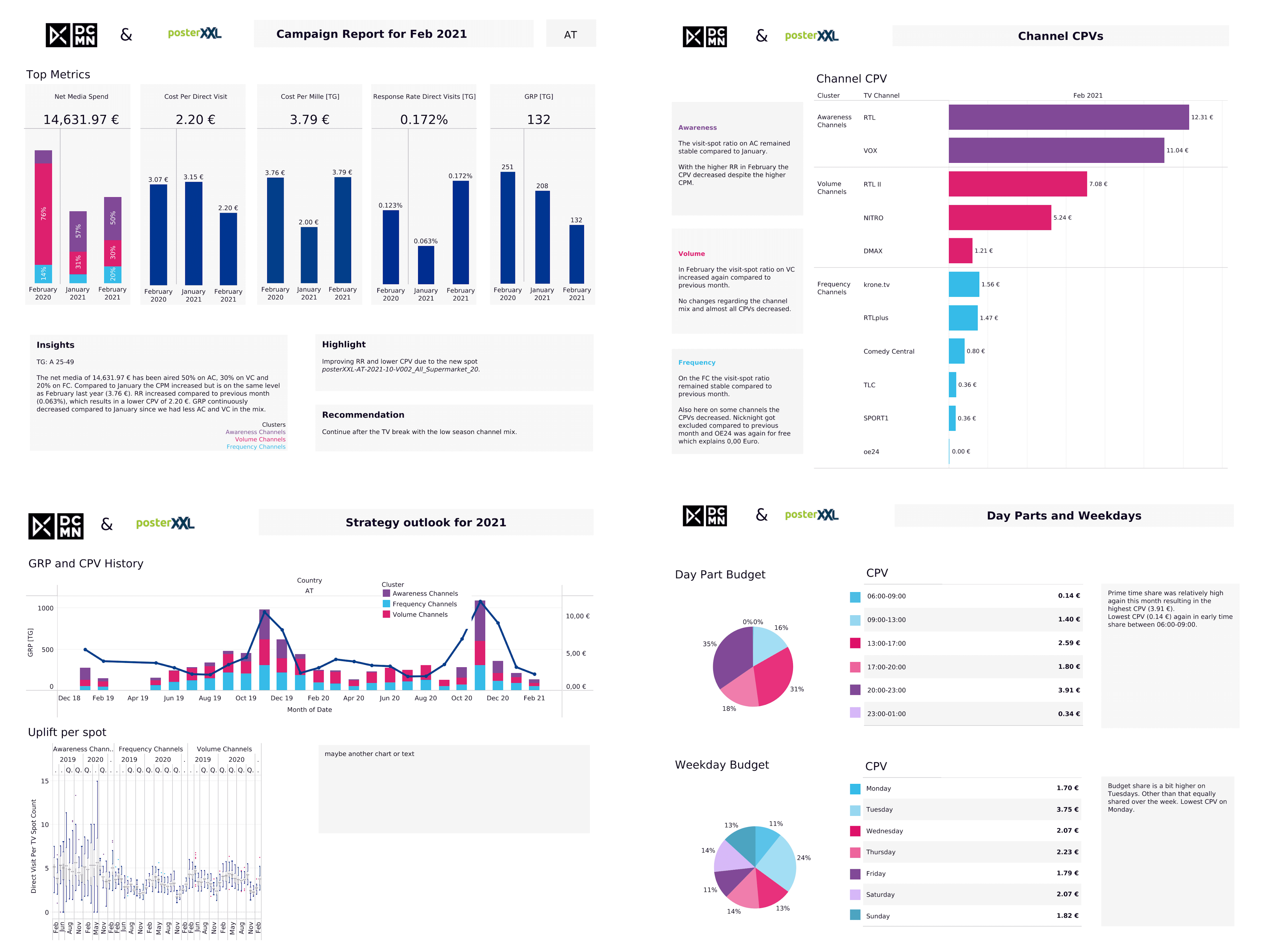 These prototypes validated the idea of splitting up report into views and the various KPIs to be show on each screen.