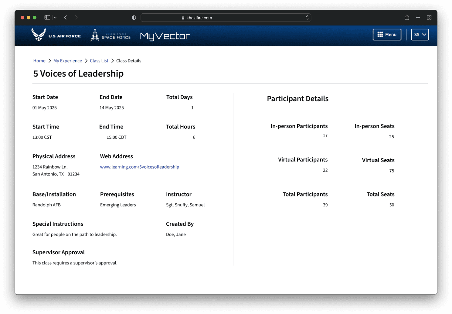 View assigned training and class details